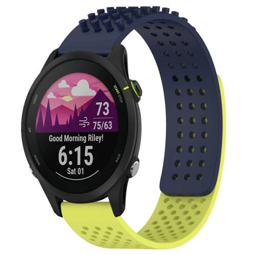 Correa de Silicona para Garmin Forerunner 255 Music con Puntos 3D Transpirables y Orificios de 22mm (Azul Medianoche + Verde Lima)