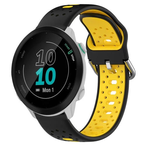 Banda de Reloj Garmin Forerunner 55 20mm Silicona Transpirable Dos Colores (Negro + Amarillo)