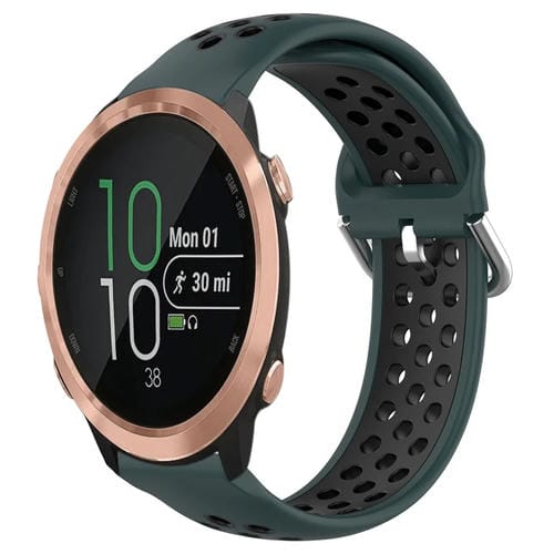 Correa de Reloj para Garmin Forerunner 645 20mm Silicona Deportiva Transpirable Perforada (Verde Oliva + Negro)