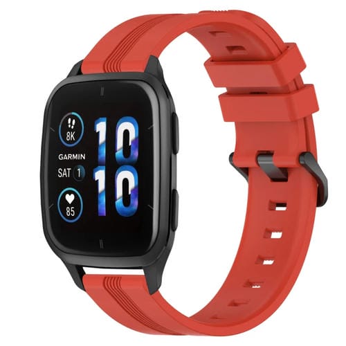 Banda de Reloj Garmin Forerunner Sq2 20mm Silicona cóncava a rayas (Rojo)