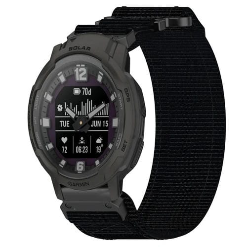 Correa para Garmin Instinct Crossover Solar de Nailon 22mm con Cierre de Gancho y Bucle (Negro)
