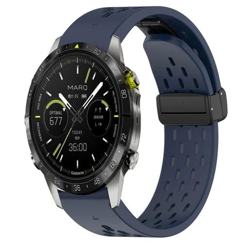 Correa de Silicona para Garmin Marq Athlete Gen 2 con Orificio y Hebilla Plegable 22mm (Azul Medianoche)