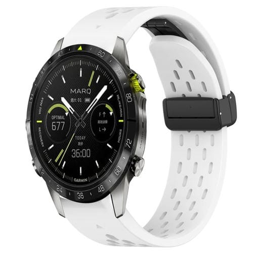 Correa de Silicona para Garmin Marq Athlete Gen 2 con Orificio y Hebilla Plegable 22mm (Blanco)