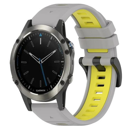 Correa de silicona para Garmin Quatix 5 22mm sports dos colores (Gris + Amarillo)
