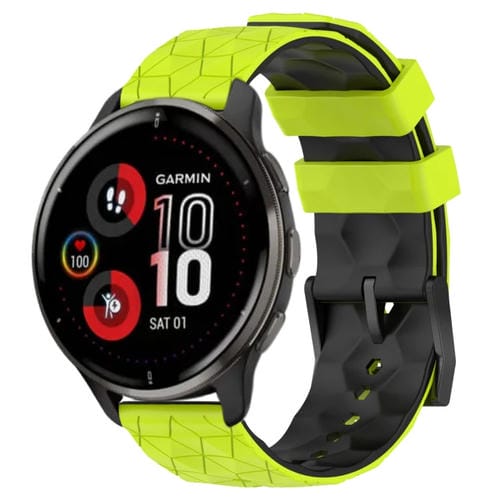 Banda de Reloj Garmin Venu 2 Plus 20mm Silicona Patrón de Fútbol (Verde Lima + Negro)