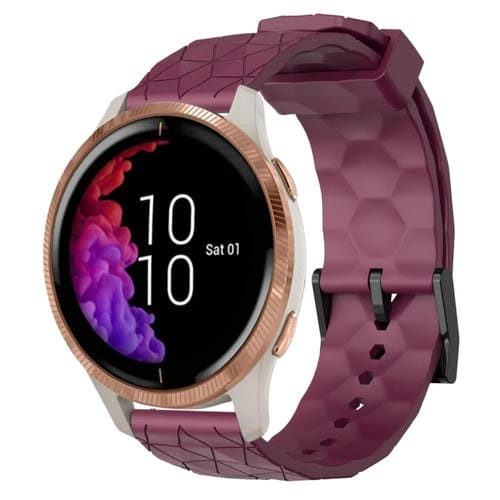 Banda de Reloj para Garmin Venu 20mm Patrón de Fútbol Silicona (Rojo Vino)