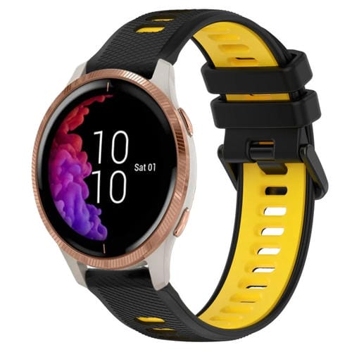 Correa de Silicona 20mm para Garmin Venu Sports Dos Colores (Negro y Amarillo)