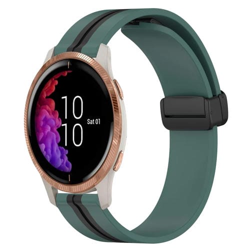 Correa de Reloj para Garmin Venu Silicona 20mm con Cierre Magnético Plegable (Verde Oliva + Negro)