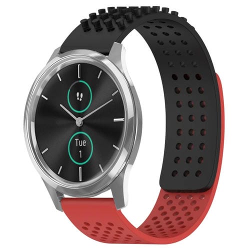 Correa de Reloj silicona para Garmin Vivomove Luxe con puntos 3D transpirables y orificios 20mm (Negro + Rojo)