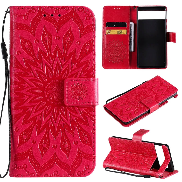 Para Google Pixel 6 Pro Sun Sun Pattern Horizontal Flip Funda de cuero con ranura para tarjeta y soporte y cartera y cordón (rojo)