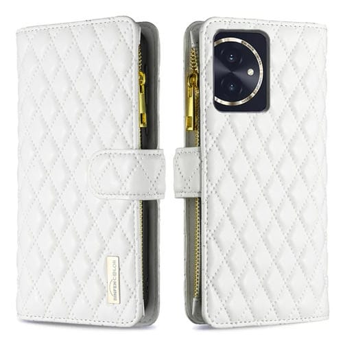 Funda de Cuero con Tapa y Zipper para Honor 100 Diamond Lattice (Blanco)