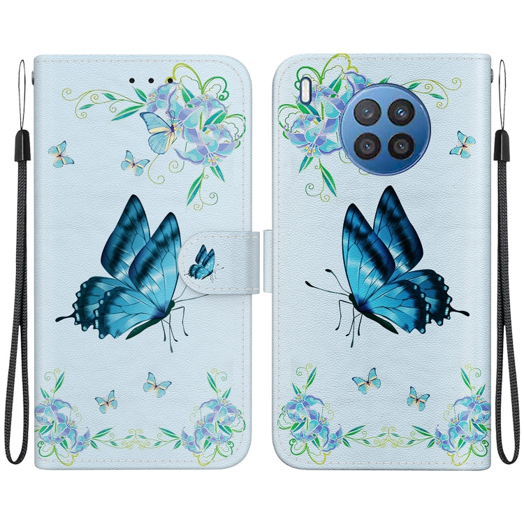 Estuche para Honor 50 Lite de Cuero con Dibujo Coloreado y Textura de Cristal (Pensamientos Azules)
