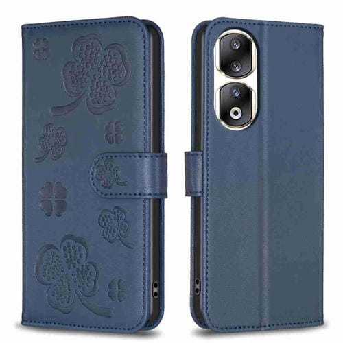 Funda de Cuero para Honor 90 Pro con Relieve de Cuatro Hojas (Azul)