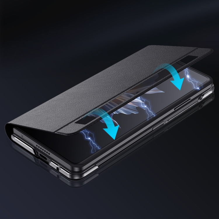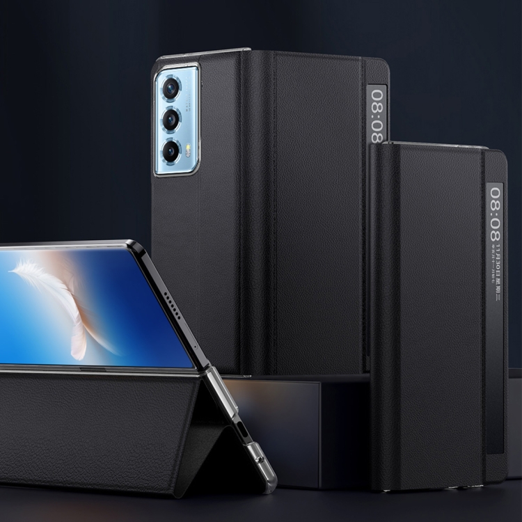 Funda Para Honor Magic Vs2 Flip Holder de Cuero Inteligente con Ventana Lateral (Negro)