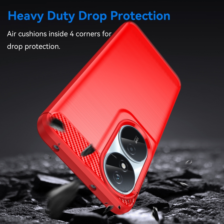 Funda TPU Fibra de Carbono para Honor Play 50 Plus con Textura Cepillada (Rojo)