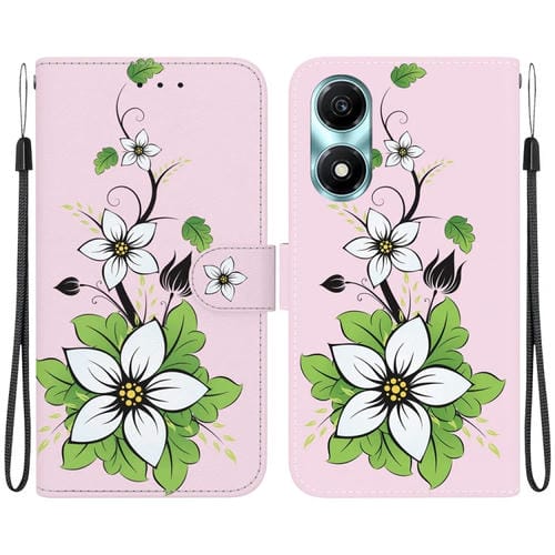 Funda de Cuero para Honor X5 Plus y Play 40C con Dibujo Coloreado y Textura de Cristal (Lirio)