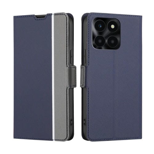Funda de Cuero para Honor X6A 4G con Botón Lateral y Textura de Sarga (Azul)