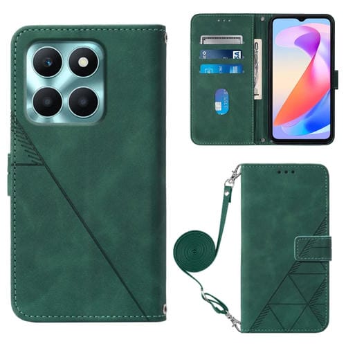 Funda para Honor X6A Crossbody de Cuero con Tapa en Relieve 3D (Verde Oscuro)