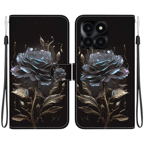 Funda para Honor X6A de Cuero con Dibujo Coloreado y Textura de Cristal (Rosa Negra)