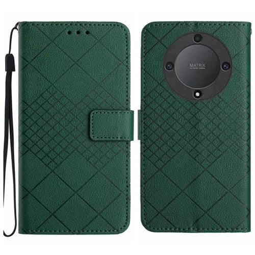 Funda para Teléfono Honor X9A Magic5 Lite 5G Cuero Textura Rejilla Rómbica (Verde)