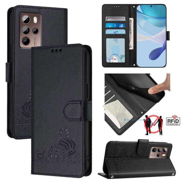 Estuche para HTC U24 Pro CAT Rat de Cuero RFID con Patrón en Relieve y Cordón (Negro)