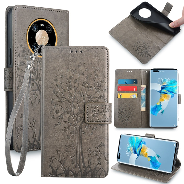 Funda de Cuero para Huawei Mate 40 Pro con Relieve de Árbol y Ciervo (Gris)