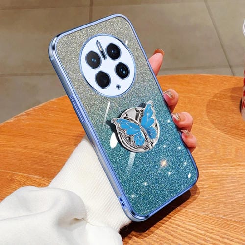 Funda para Huawei Mate 50 Pro TPU con Soporte de Mariposa y Brillo Degradado (Azul Sierra)