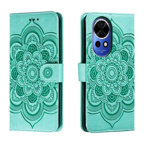 - 1x Funda de Cuero Huawei Nova 12 con Patrón en Relieve Sun Mandala (Verde)
