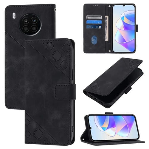 Funda de Cuero Skin Feel para Huawei Nova 8I en Relieve (Negro)
