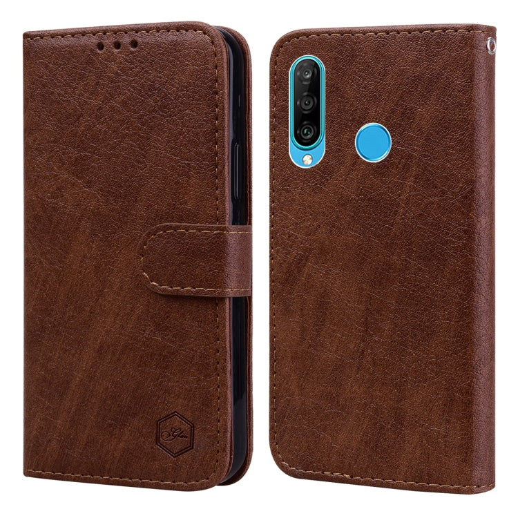 Funda para Huawei P30 Lite / Nova 4E PU + TPU Textura Cuero Aceitoso (Marrón)
