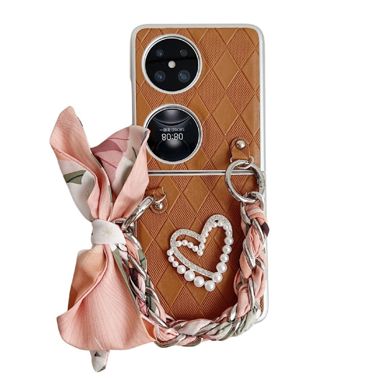 Funda para Huawei Pocket 2 en Textura de Cuero Rombo con Bufanda y Pulsera Corazón a Prueba de Golpes (Marrón)