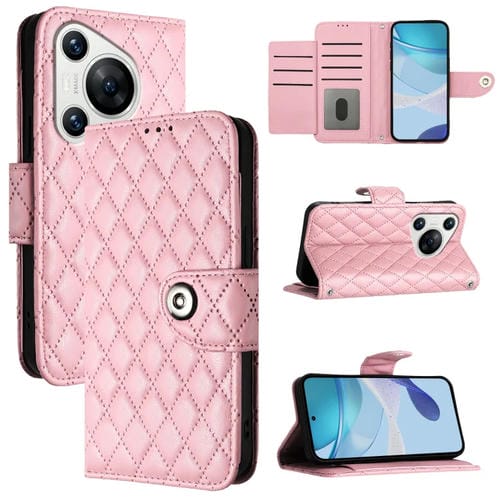 Funda de Cuero para Huawei Pura 70 con Tapa Textura Rómbica y Cordón (Rosa)