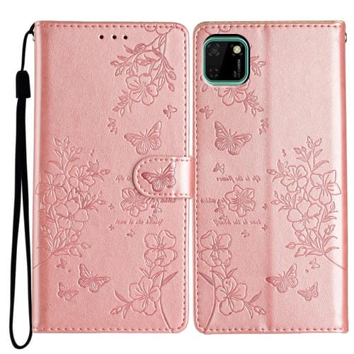 - 1x Funda de Cuero Huawei Y5P Butterfly Love Flower con Relieve para Teléfono (Oro Rosa)