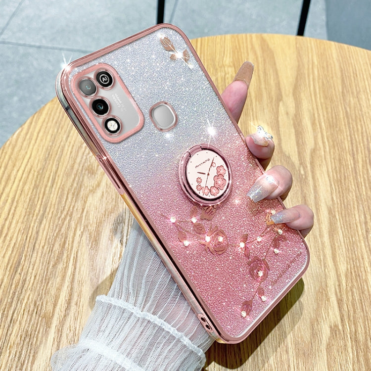 Estuche para Infinix Hot 10 Play con Anillo de Flor Inmortal y Brillo Degradado (Rosa)