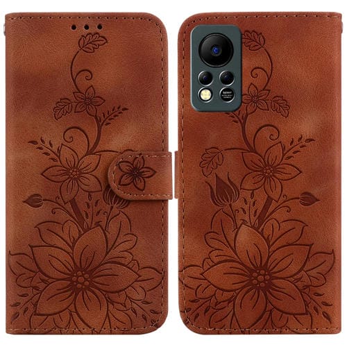 Funda de Cuero para Infinix Hot 11S Nfc X6812B con Relieve de Lirio (Marrón)