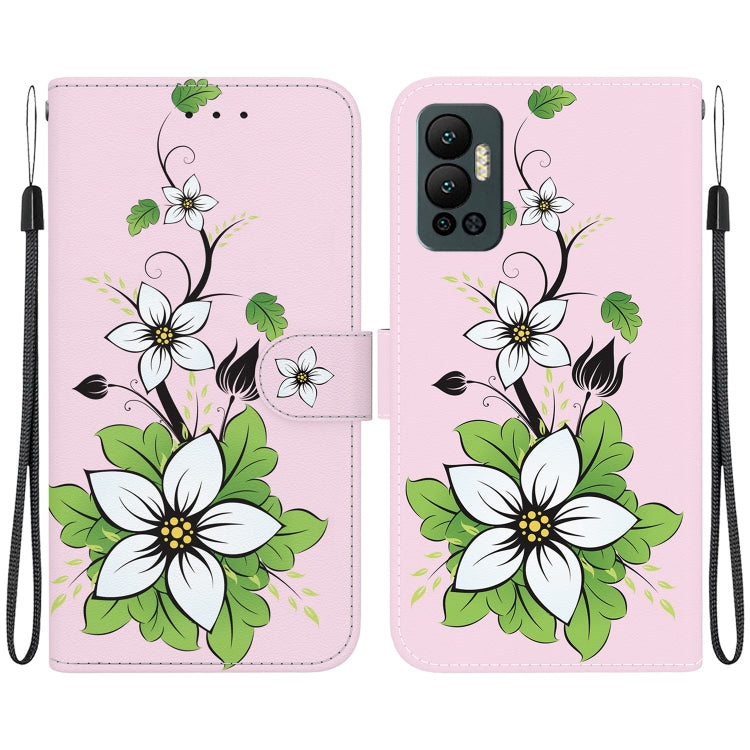 Estuche de Cuero para Infinix Hot 12 con Dibujo Coloreado y Textura de Cristal (Lirio)