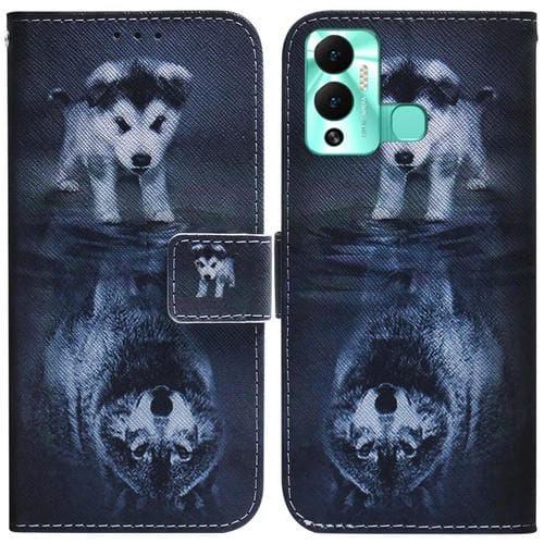 Funda de Cuero para Infinix Hot 12 Reproducir con Dibujo de Lobo y Perro (Color)