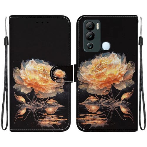 Funda de Cuero para Infinix Hot 12I con Dibujo Coloreado y Textura de Cristal (Peonía Dorada)