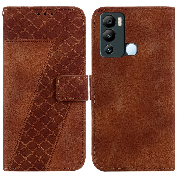 Funda de Cuero En Relieve en Forma de 7 para Infinix Hot 12I (Marrón)
