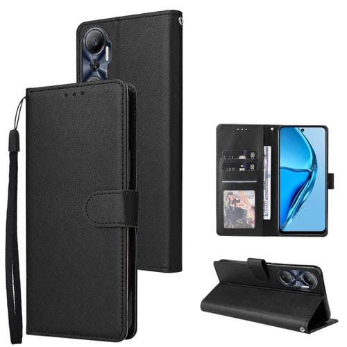 Funda de Cuero para Infinix Hot 20 4G con 3 Ranuras para Tarjetas (Negro)