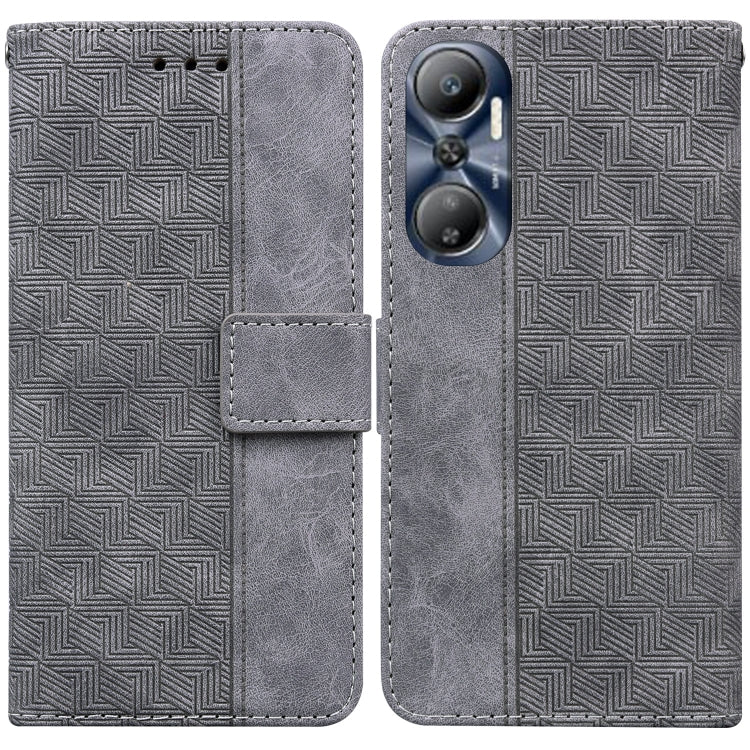 Funda de Teléfono Infinix Hot 20 Cuero con Relieve Geométrico (Gris)