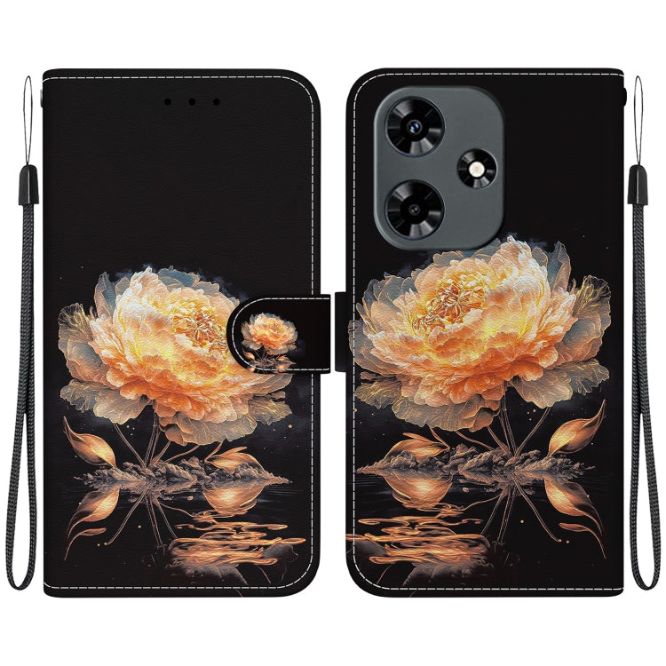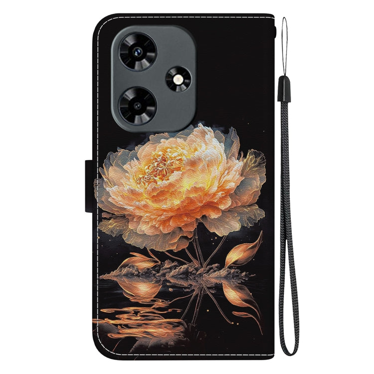 Estuche de Cuero para Infinix Hot 30 con Dibujo Coloreado y Textura de Cristal (Peonía Dorada)
