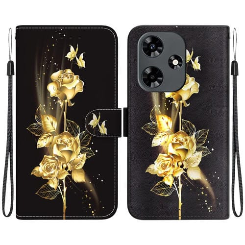Funda de Cuero para Infinix Hot 30 con Dibujo Coloreado y Textura de Cristal (Mariposa Dorada Rosa)