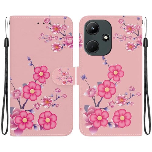 Funda para Infinix Hot 30I X669C de Cuero con Dibujo Coloreado y Textura de Cristal (Flores de Cerezo)