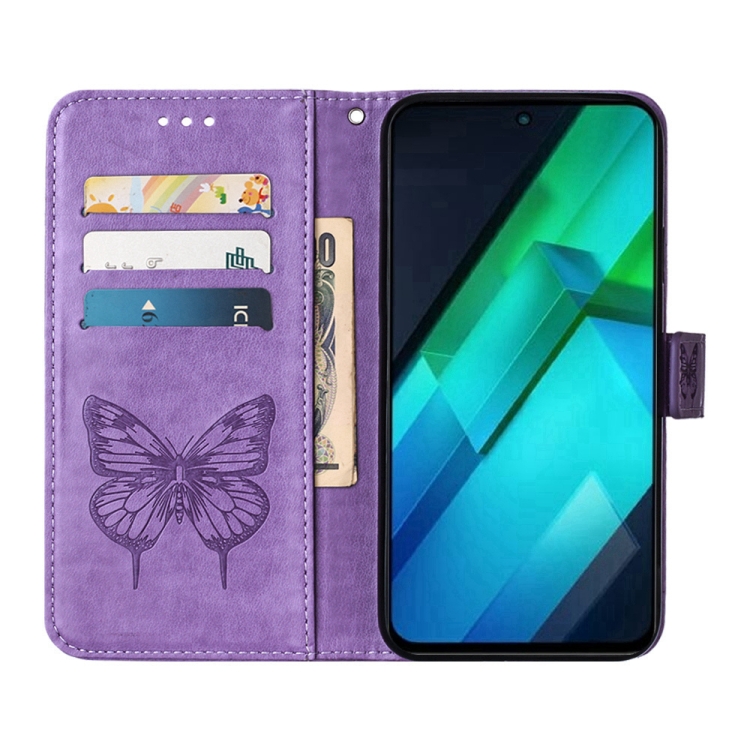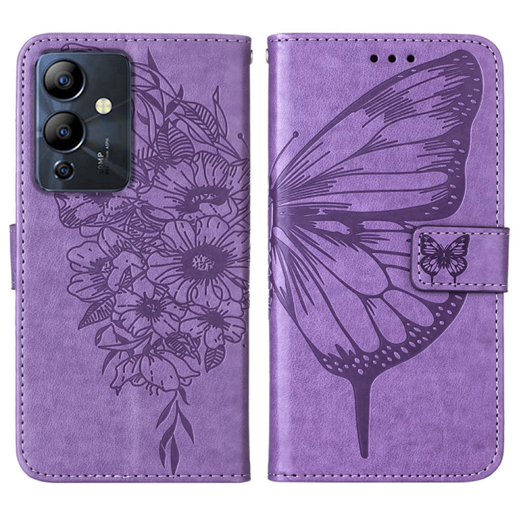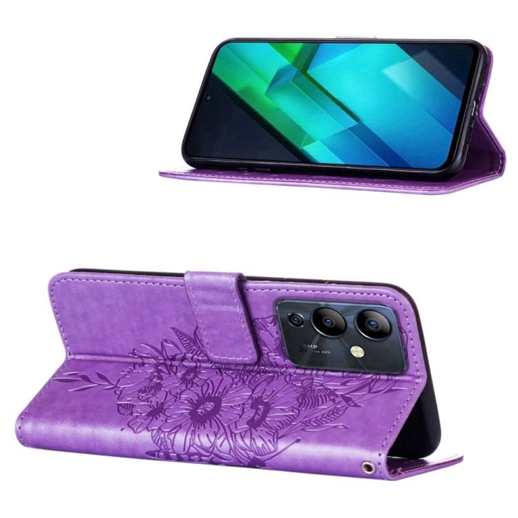 Estuche para Teléfono Infinix Note 12I 2023 G85 Cuero con Mariposa en Relieve (Púrpura Claro)