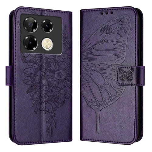 Funda de Cuero para Infinix Note 40 Pro 4G con Mariposa en Relieve (Púrpura Oscuro)