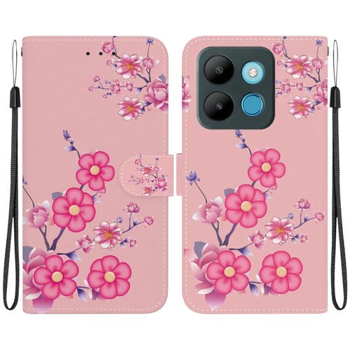 Funda de Cuero para Infinix Smart 7 con Dibujo Coloreado y Textura de Cristal (Flores de Cerezo)
