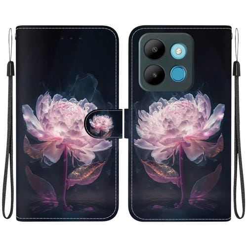 Funda de Cuero para Infinix Smart 7 con Dibujo Coloreado y Textura de Cristal (Peonía Púrpura)