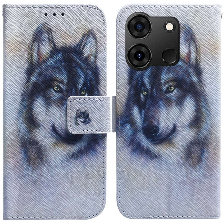 Estuche de Cuero para Infinix Smart 7 India y 7 Plus con Tapa Dibujo Lobo Blanco
