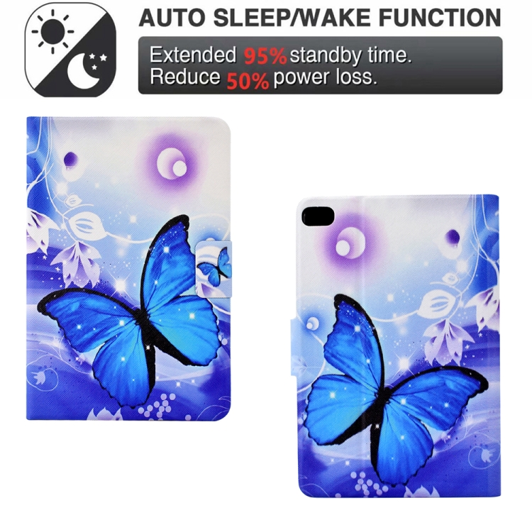 Estuche de Tableta Cuero Inteligente TPU para iPad 5/6/8/9 Prensado Eléctrico (Mariposa Azul)